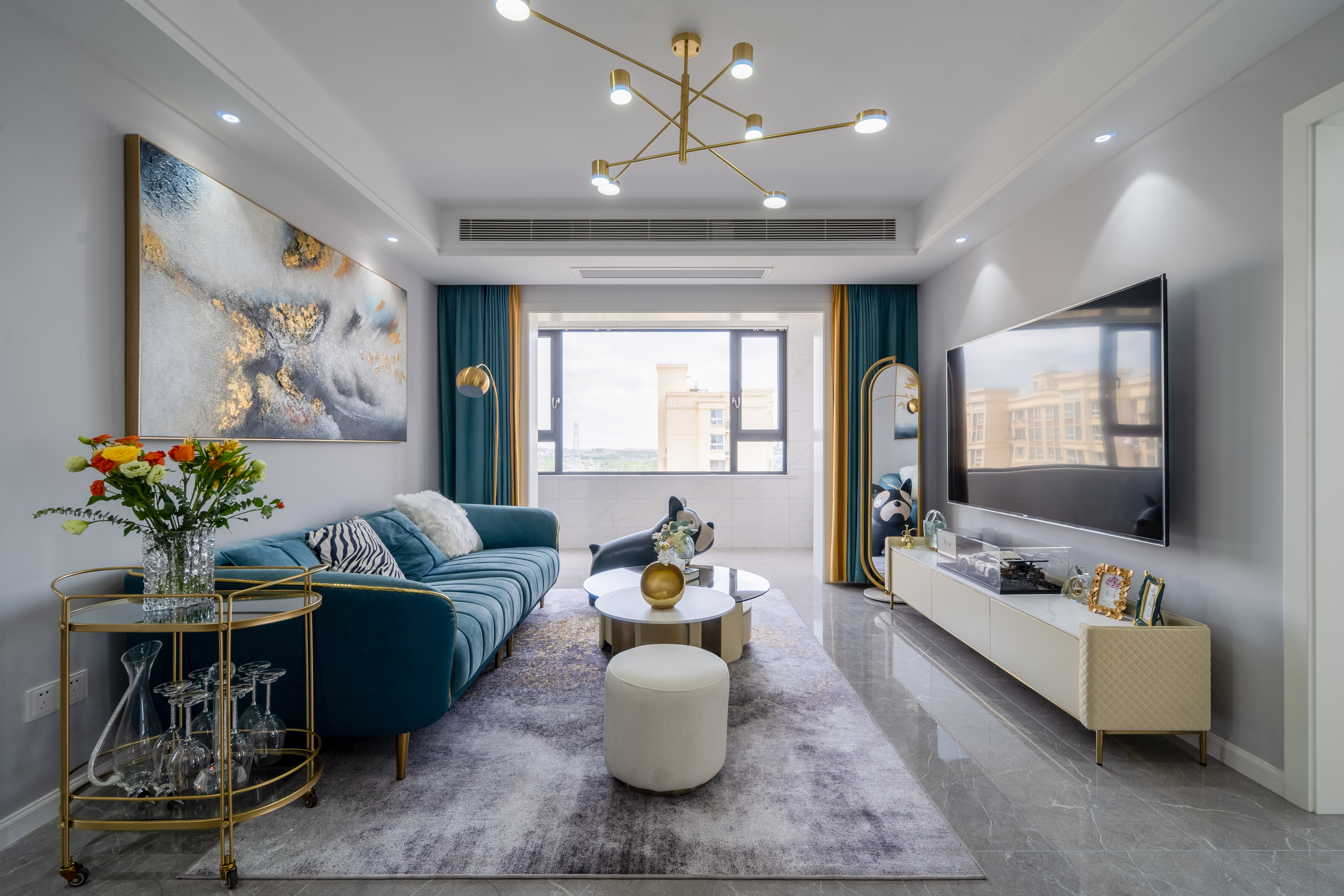 設(shè)計(jì)師:李春雪 風(fēng)格:現(xiàn)代輕奢風(fēng) 戶(hù)型:三室兩廳